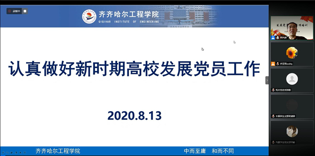 8月13日上午,校党委组织部在线举办发展党员工作专项培训,各党支部书记、组织委员共60余人参加培训学习。 党委组织部郑洪波同志以《认真做好新时期高校发展党员工作》为题,从发展党员工作总要求、原则、依据、流程...