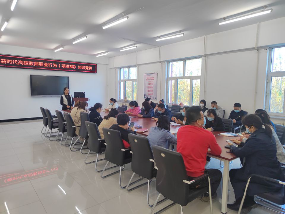 为深入推进师德师风建设,10月12日下午,建筑系在二号教学区2409会议室,举行《新时代高校教师职业行为十项准则》知识竞赛,竞赛采用学习通测试方式,由建筑系主任陈景鑫、教学工作副主任徐明负责监考。全体教师参加...