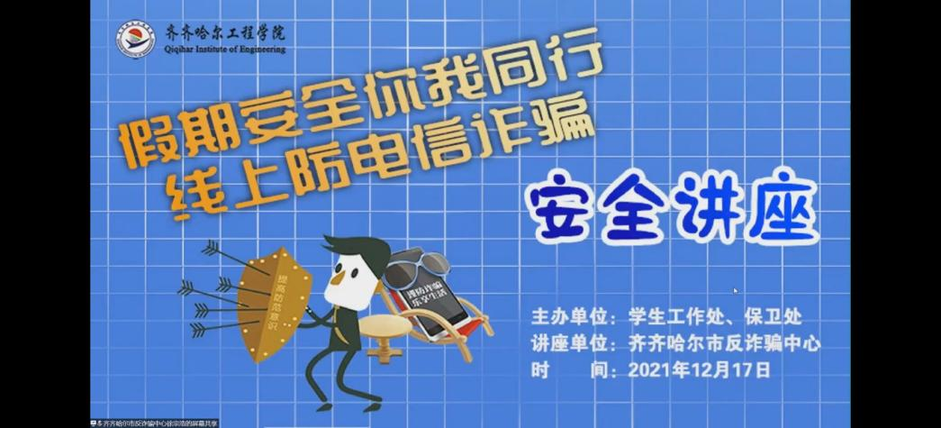 为进一步加大校园防诈骗宣传力度,普及反诈骗知识,增强学生的法治观念和安全防范意识, 12月17日17点半,学校开展“假期安全你我同行,线上防电信诈骗”专场安全讲座。此次活动由学生工作处、保卫处联合举办,特邀齐...