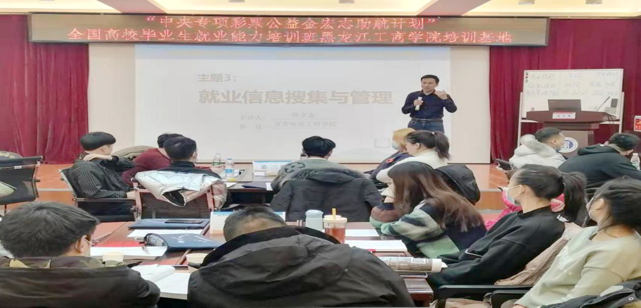 12月26日-28日,学校创业学院副院长康静、教师徐立志应邀在“中央专项彩票公益金宏志助航计划”全国高校毕业生就业能力培训班黑龙江工商学院培训基地授课。培训课程共分5个模块10个主题。来自省内部分本科、高职专科...