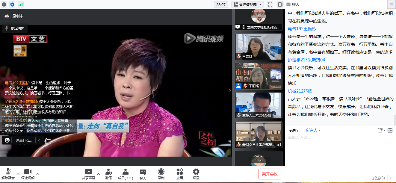 4月25日下午,学校第十一届校园读书节启动仪式在线上举行。大学语文教研室全体教师,爱阅文学社社长孙泓博、求索文学社社长朱文旭、D.E.T推理社社长王浩然、18文艺连社长梁萧及各学生社团代表参加仪式。 启动仪式上...