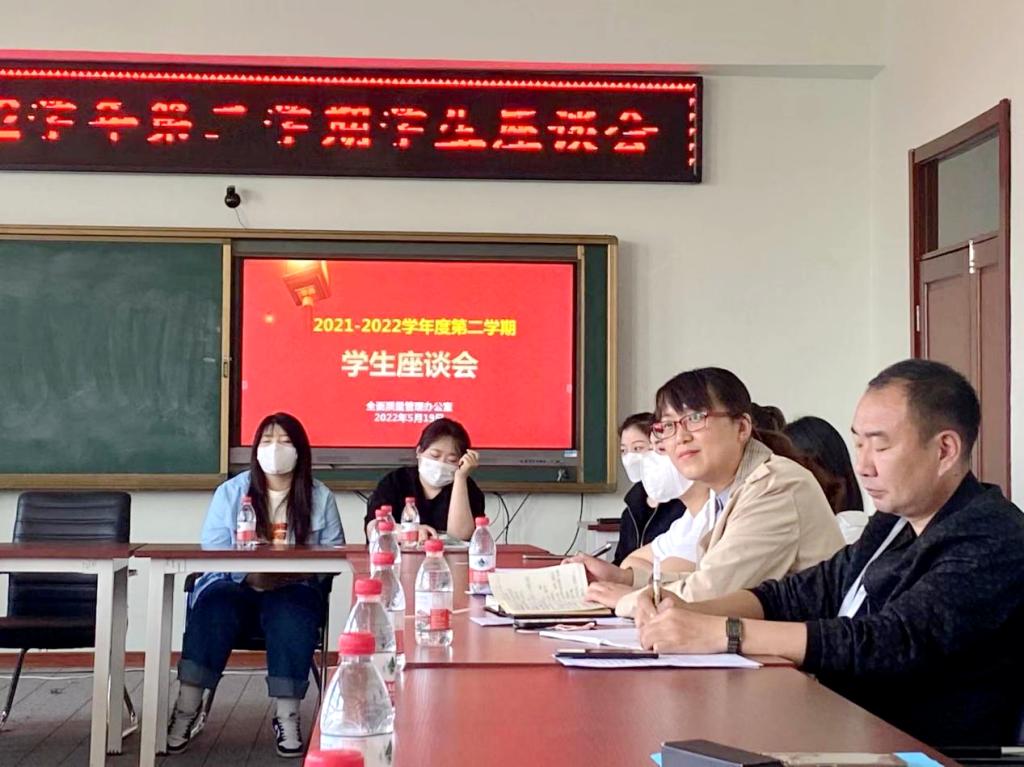 5月19日下午,全面质量管理办公室在图书馆608室召开2021-2022学年第二学期学生座谈会。全质办主任孟艳辉主持,全质办宫玉斌、周爽,以及来自各系不同专业的22名学生代表参加交流。 会上,同学们积极发言,就开设课程...