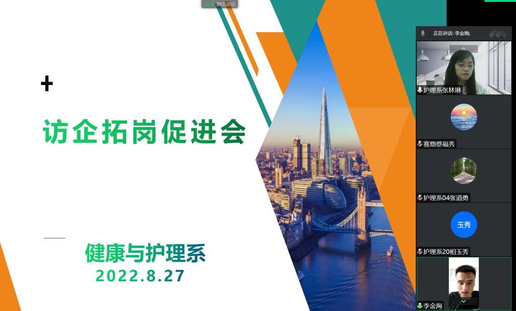 为贯彻落实《黑龙江省高校书记校长访企拓岗促就业专项行动的实施方案》精神,进一步促进健康与护理系就业工作,8月27日健康与护理系护理学专业、健康服务与管理专业进行线上访企拓岗活动。天津市第四中心医院、特色医...