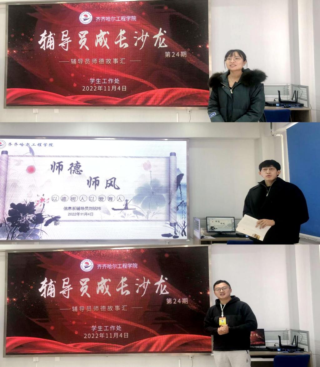 11月4日,学校第24期辅导员成长沙龙在二号教学区2102会议室举办,本期沙龙以辅导员讲述师德故事的形式开展。副院长张振笋出席会议,全体辅导员40余人参加。 机电工程系辅导员于海龙基于《新时代高校教师职业行为十项...