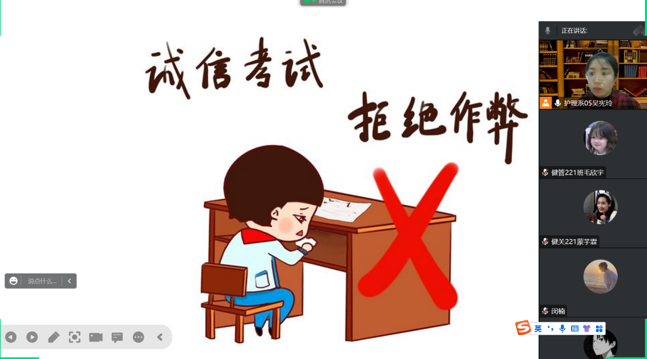 11月27日晚,健康服务与管理专业召开学生线上座谈。该专业221班10位同学参加,吴宪玲老师主持。 会上,吴老师了解了学生各门课程学习状况,并对学生提出的问题进行了解答,对于学生期末复习提出了建议。吴老师说,...