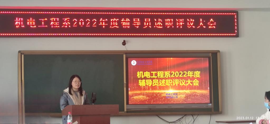 1月12日,室外雾凇美景,室内暖意融融,机电工程系在图书馆608举行学生工作总结述职会。 机电工程系负责人甄彩霞,党总支书记、学生工作副主任王丽萍及全体专业长、辅导员参加。 辅导员于海龙、苏海龙、徐飞、王洪春...