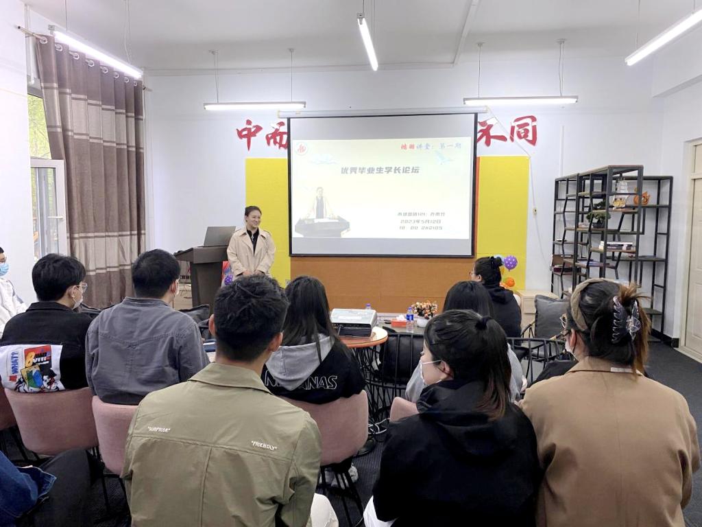 5月12日18时,管理工程系鸿羽讲堂第一期,即优秀毕业生学长论坛正式开讲。现场35人、线上400余人聆听优秀毕业生营销121班乔雨竹同学的十年奋斗故事,辅导员王丽伟老师主持。 王丽伟老师介绍了优秀毕业生学长、营销1...