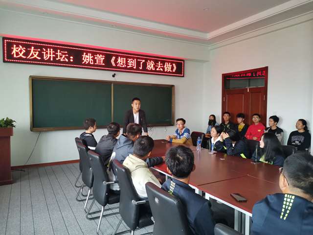 9月30日上午,2016级工程造价毕业生姚萱应学生发展中心校友会邀请,回校作《想到了就去做》大学生活分享讲座,来自各系的60余名2019级新生聆听讲座。 姚萱学长首先与新生们分享了2019年3月23日,他在毕业实习地大兴安...