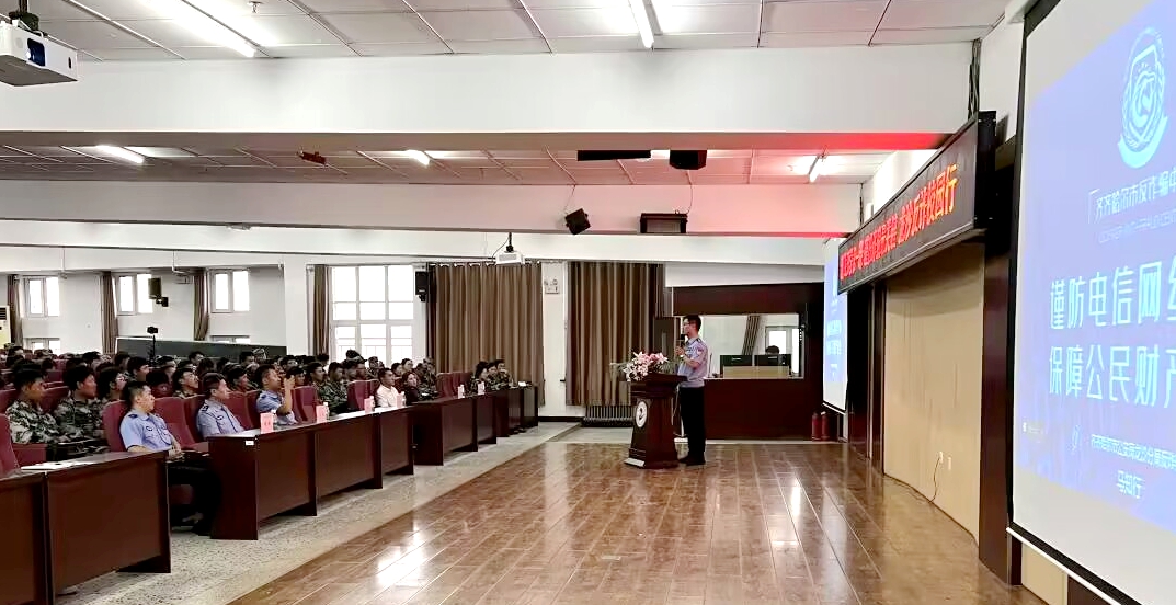 9月8日,机电工程系特邀齐齐哈尔市龙沙区刑侦队刑警以及中国银行工作人员在图书馆501会议室为2023级新生讲安全第一课。龙沙刑侦大队长王法、反诈中队长周亮,以及民警杨楠、马知行,中国银行齐鹤支行行长张宇、客户经理邢家新来到课堂,线上线下600余名学生听课。马知行警官从专业的角度为学生讲解什么是诈骗、什么是电信诈骗和两者之间的区别,并用生动鲜活的案例,介绍了国内电信诈骗的历史由来以及受害者的主要人群特征,还...