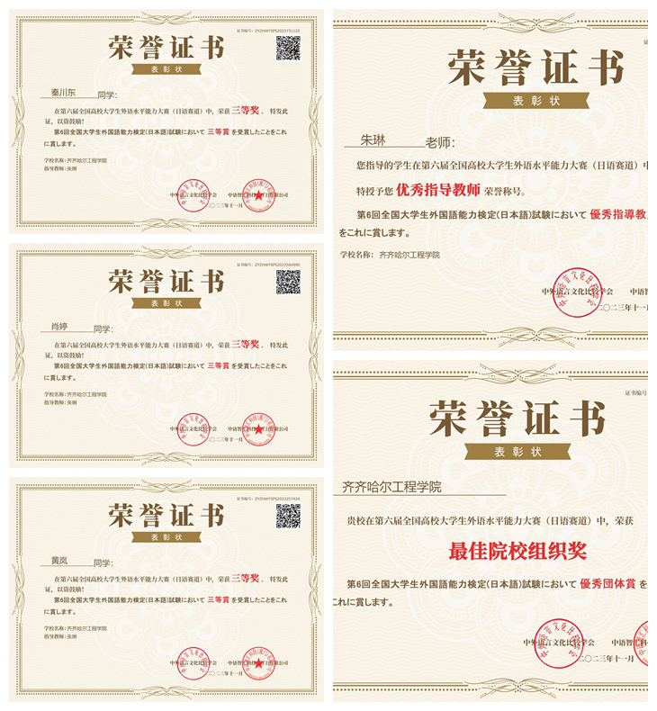 近日,第六届全国高校大学生外语水平能力大赛成绩揭晓,管理工程系英语专业的骆权涛同学在日语赛道获得特等奖;彭季秋和唐章磊同学获得二等奖;刘春雨等八名学生以及信息工程系计科231班黄岚、计科232班秦川东、计科233班肖婷获得三等奖;Beat365荣获“最佳院校组织奖”;朱琳老师荣获“优秀指导教师称号”。本次大赛由中外语言文化比较学会主办,秉持“以赛促教、以赛促学、以赛促练”的办赛理念,共设置英语、日语两个赛道,全...