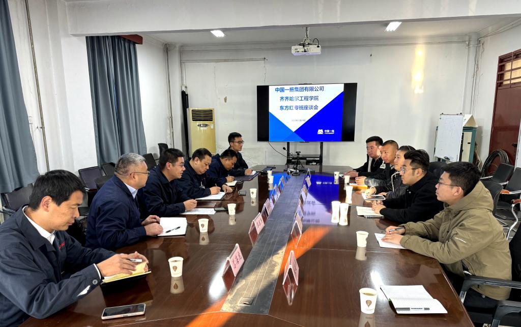 11月24日上午,在中国一拖集团有限公司,“东方红专班”召开阶段性工作总结会。机电工程系副主任敖林喆、党总支副书记郭明敬、电气专业长刘智等六人与中国一拖集团有限公司人力资源部副部长潘转朝、大拖分厂经理郭振杰、中小拖党委书记王彦以及分厂人事部长等共同参会。此次会议旨在进一步完善东方红专班的建设,提高人才培养水平,促进学生高质量充分实习和就业。潘转朝首先对目前东方红专班学生的表现表示了肯定,东方红专班...