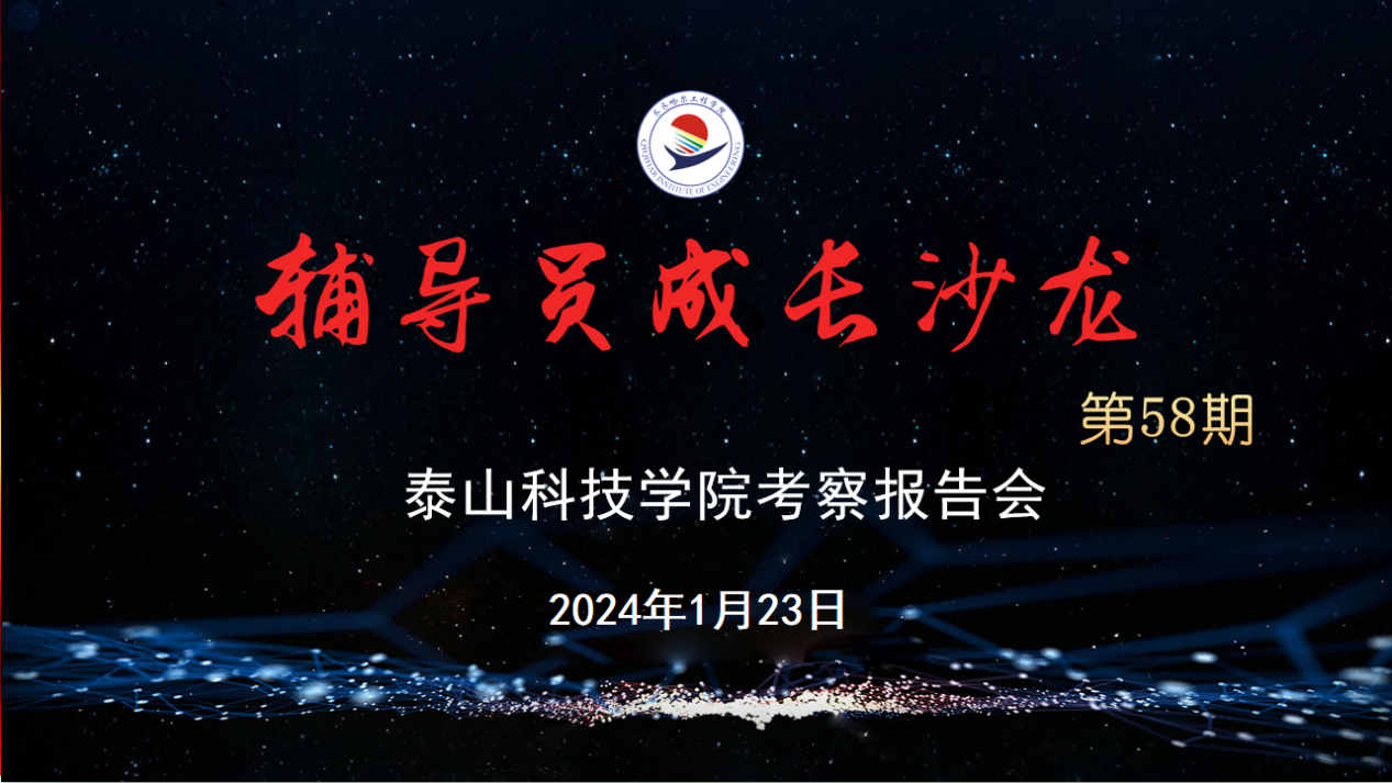 1月23日下午,第58期辅导员成长沙龙在学校2号教学区2508会议室举办,主题为“泰山科技学院考察报告会”。学生工作处负责人王丽萍、各系党总支副书记、全体辅导员、学生工作处人员参加会议。 日前,Beat365学生工作团队一行7人,由校团委张云惠老师带队赴山东省泰山科技学院开展了为期三天的学生工作考察交流。报告会上,7位老师分别从不同角度复盘总结,交流学习成果,分享心得体会及工作思考。张云惠老师从泰山科技学院的校园...