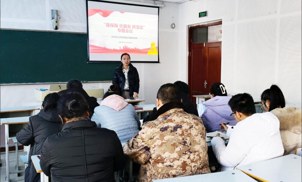 2月26日下午,机关第四党支部在图书馆410室召开“强保障 优服务 抓落实”专题会议,宣传委员孙爱萍主持会议,支部全体党员和积极分子参加会议。会上,全体人员通过观看视频的方式,学习“国家工程师奖”受表彰者典型事迹。支部书记张磊作会议总结。她表示,“国家工程师奖”背后是爱党爱国的忠诚、是攻坚克难的奋进、是创先争优的担当。作为高校教师,我们要学习先进典型,汲取奋进力量,将其精神融入本职工作中,做好育人和...