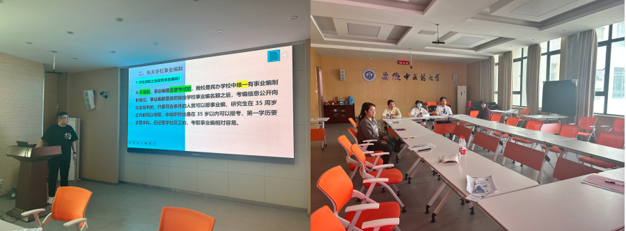 为加强师资队伍建设,储备康养人才,健康与护理系积极拓展招聘渠道,与各个中医药大学主动建立联系。4月25日,护理学专业王印老师赴安徽中医药大学,在学生工作处会议室开展宣讲会。王印老师介绍了学校的概况、健康与护理系基本情况与招聘需求、教师的薪资待遇、职称和职务的晋升情况、招聘流程等。毕业生踊跃提问,共12人投递了简历。此次活动促进了学校与安徽中医药大学的深度交流,为安徽中医药大学学生提供了高质量的就业机...