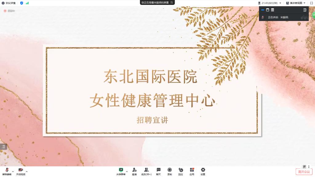 为拓宽毕业生就业路径,促进毕业生更高质量就业,6月24日,康护工程系在腾讯会议召开“东北国际医院女性健康管理中心招聘会”。本次招聘会邀请东北国际医院女性健康管理中心宋振铎老师进行宣讲。康护工程系主任郭玲玲和2024届毕业生参加,系党总支副书记姜宏伟主持会议。招聘会上,宋振铎老师详细地介绍了东北国际医院女性健康管理中心的概况、发展规划、招聘岗位、职业发展和薪资待遇等情况,让同学们对东北国际医院女性健康...
