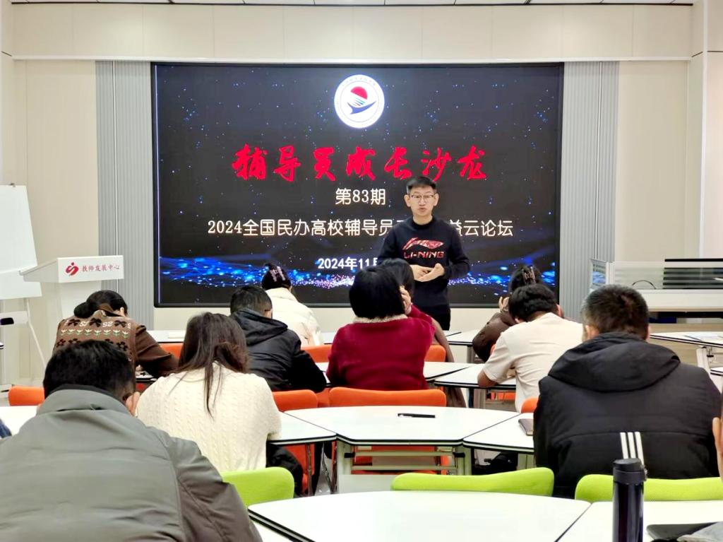为适应教育数字化转型的趋势,提升辅导员队伍整体素质和工作能力,推动学生工作创新发展,11月8日上午,学生工作处在2号教学区2102会议室开展第83期辅导员成长沙龙,集中观看2024年全国民办高校辅导员工作公益云论坛。各系党总支副书记、全体辅导员、学生工作处全体参加,本次沙龙由学生工作处王睿主持。云论坛上汇聚了来自全国各地的民办高校辅导员精英,他们围绕辅导员工作的核心议题展开深入交流与探讨,分享了各自在实际工...