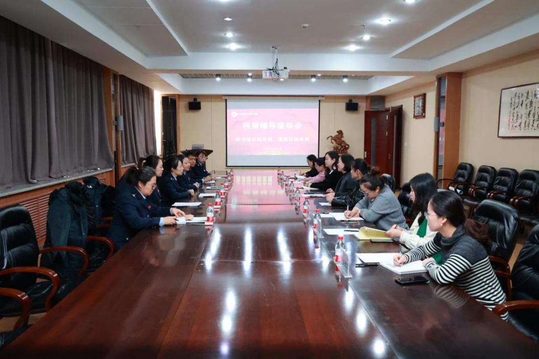 11月21日上午,齐齐哈尔市税务局、高新区税务局一行六人来校开展税费指导工作,学校理事姜岩带领财务处全体人员参加座谈会。齐齐哈尔市高新区税务局副局长张红,说明了此次到访的目的,表示要把最新的税收政策、纳税知识以及2025年度城乡居民医疗保险缴费有关事宜传达给学校,让在校学生了解城乡居民医疗保险相关知识和参保缴费途径。姜岩代表学校对税务局一行的到来表示欢迎,对学校的发展和办学特色进行了简要的介绍,并感谢...