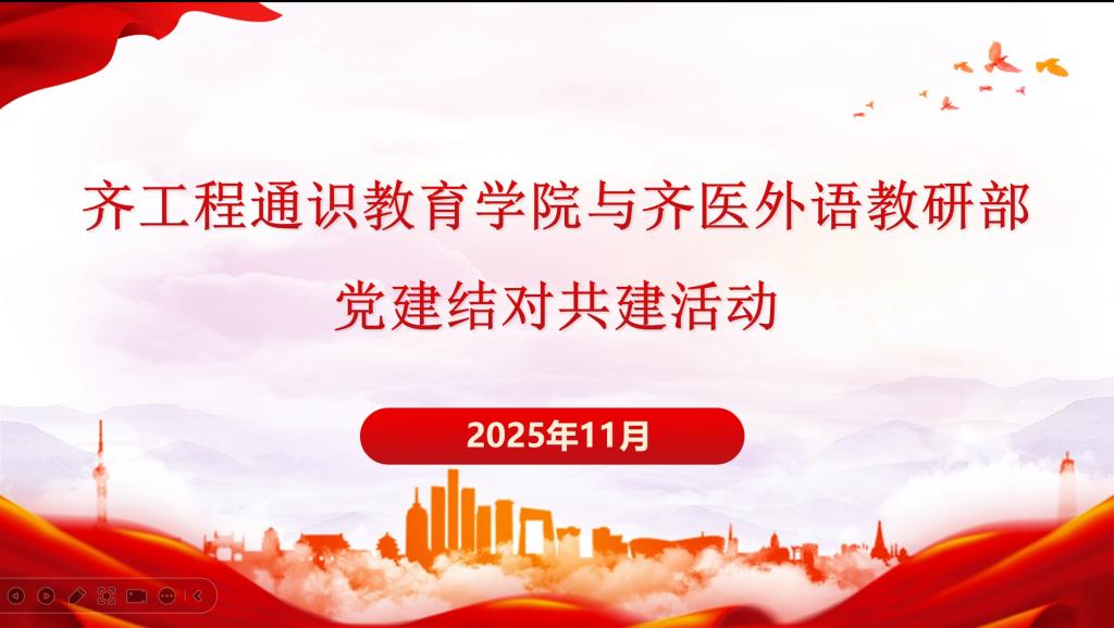 近日,学校通识教育学院党支部与齐齐哈尔医学院联合第三党支部共同举办了以“结对共建聚合力,党务业务深融合”为主题的党建结对共建活动。本次活动在线上进行,两支部以虚拟教研室为平台,围绕微专业建设为主题的教学改革和外语“三进”工作展开交流,深入推进跨校党建联动与教学资源共享。此次活动由通识教育学院党支部书记张洪岩主持,齐齐哈尔医学院联合第三党支部书记程前光及所属支部党员全程参与,通识教育学院党支部全...