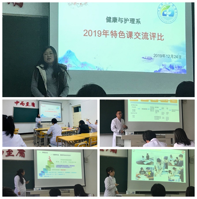 12月24日下午,健康与护理系组织2019年度特色课交流评比活动,系主任张静、教学工作副主任张平、健管专业带头人杜红梅、健管专业长郭玲玲担任评委。 11位教师分别进行说课交流,在精心准备的基础上,充分展示自己的课...