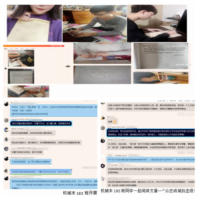 “抗击疫情,人人有责”,2月11日-19日,辅导员王虹老师组织机械本183班全体同学开展“众志成城,共抗疫情”系列活动,共同携手为祖国加油,为武汉加油! 机械本183班同学们按照学校疫情防控工作部署,甘当“宅模范...