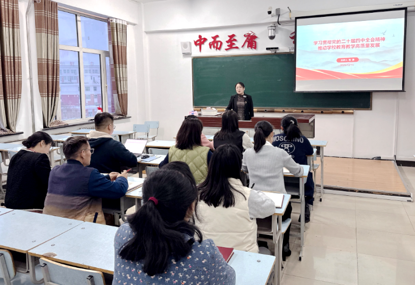 为深入贯彻落实党的二十届四中全会精神,切实将思想和行动统一到党中央的决策部署上来,12月19日下午,学校党委委员、副校长张静在图书馆510教室作党的二十届四中全会精神专题宣讲。宣讲会采取线上线下相结合的方式开展,土木与管理学院、通识教育学院、教务处、全面质量管理办公室等部门党员及教职工参加学习。 张静以“学习贯彻党的二十届四中全会精神,推动学校教育教学高质量发展”为题,围绕党的二十届四中全会的重大意...