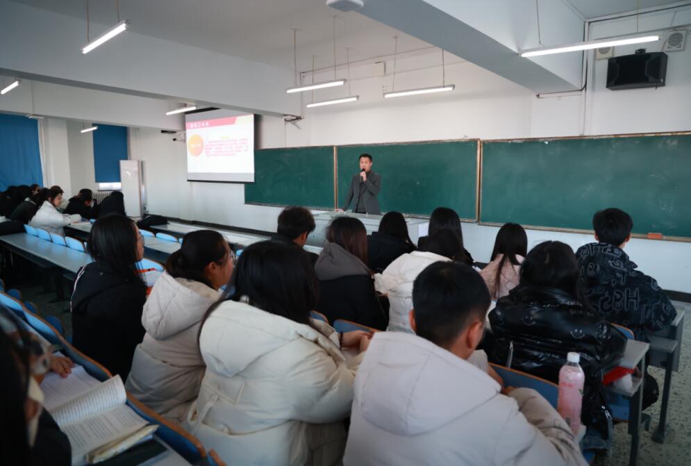 12月14日上午,在图书馆201教室,学校党委书记郭伟东走进《习近平新时代中国特色社会主义思想概论》课堂,为财务管理专业232、233班学生讲授了一堂生动的思政课。郭伟东为同学们讲授了《习近平新时代中国特色社会主义思想概论》课程中第十七章全面从严治党的内容。他将课程内容与党的二十大精神相结合,向学生们深入诠释了全面从严治党是新时代党的建设的鲜明主题,并结合时事热点内容进行举例,深入浅出地让学生们体会到全面加...