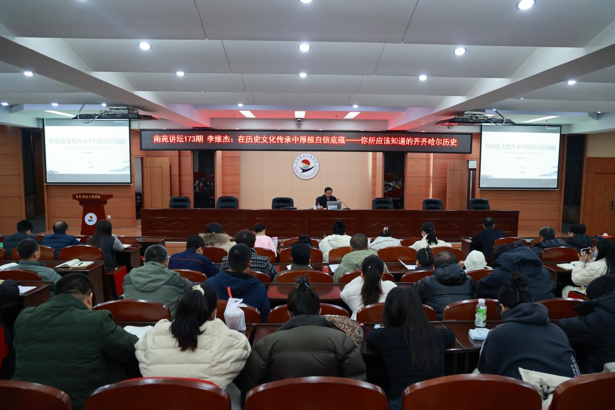 为深化师生对地方文化的理解,推动城市历史与校史文化深度融合,11月15日上午,学校在图书馆601报告厅举办了第173期南苑讲坛。本次讲坛特邀齐齐哈尔市社会科学界联合会党组书记、主席、一级调研员李维杰担任主讲。他以“在历史文化传承中厚植自信底蕴——你所应该知道的齐齐哈尔历史”为题作专题讲座。学校领导、骨干学习班成员、马克思主义学院全体教师共同参与。李维杰以深厚的学识,从四个维度系统解读了齐齐哈尔的历史文化...